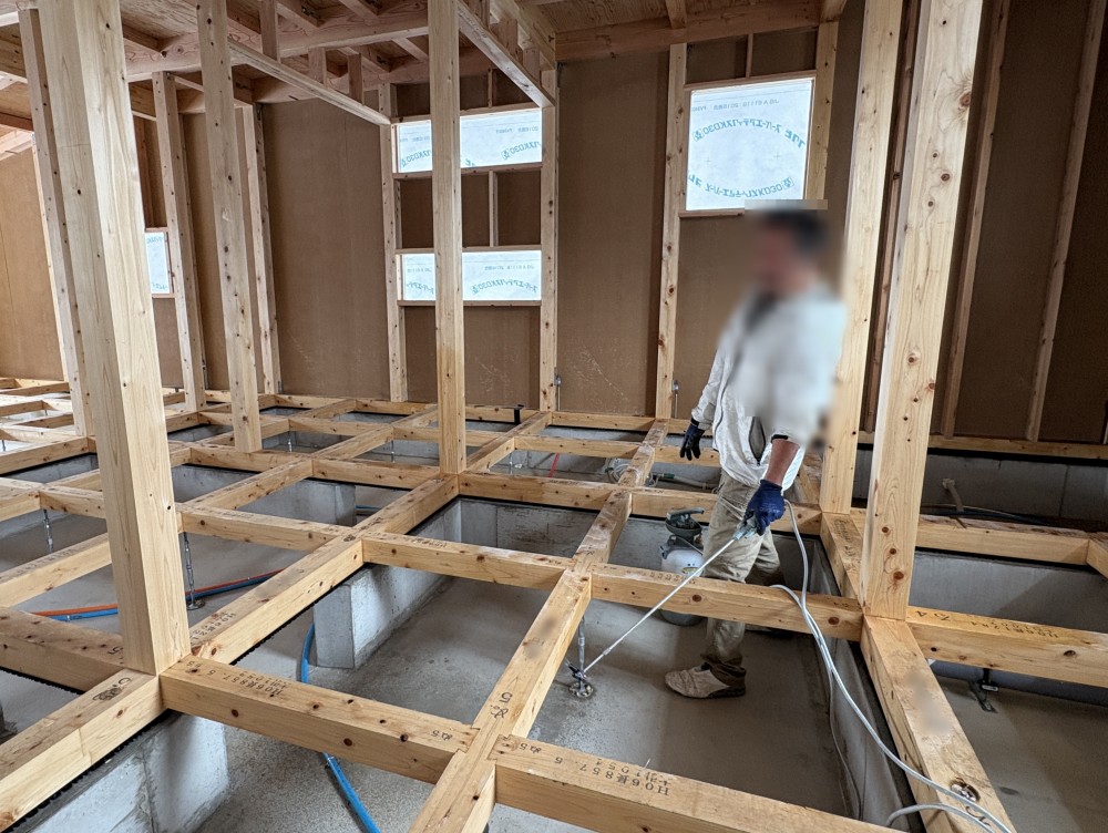 先日、「伊奈の住居」のホウ酸による防蟻処理(弊社標準仕様)を施工しました。