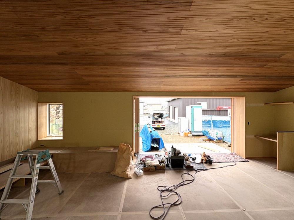 「伊奈の住居」は、大工さんによる木工事が終了し現在は内装仕上工事中です。